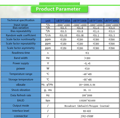 Sensor giroscópio de fibra óptica UBTPT300Y para sistema de rastreamento por servo de navegação inercial